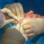 麻酔が効いてきたら、マーキングの線に従い切開します。