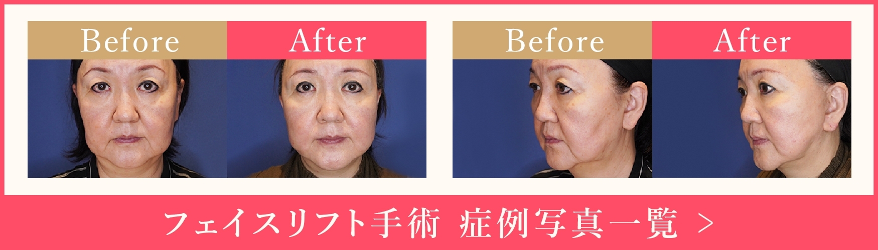 顔全体のたるみが一気に解消できるため、一度の手術で若々しさを取り戻すことができます。